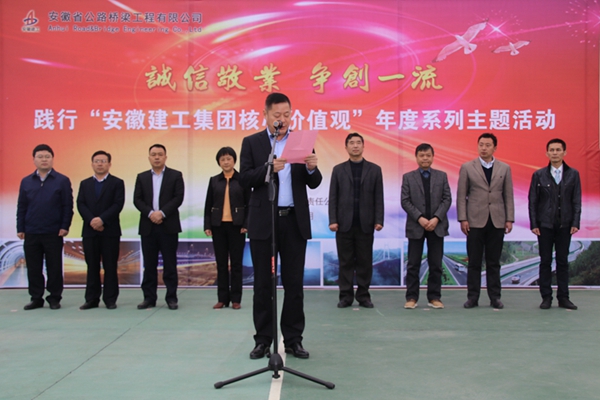 此次啟動儀式是路面公司踐行“安徽建工集團(tuán)核心價值觀”系列特色主題活動的開篇,也是路面公司年度黨建工作的重中之重。活動期間,路面公司將深入學(xué)習(xí)集團(tuán)公司企業(yè)文化核心價值觀,緊密結(jié)合實際,在全公司范圍內(nèi)組織開展一系列豐富多彩的主題活動,進(jìn)一步引導(dǎo)員工踐行集團(tuán)核心價值觀,營造誠實守信、愛崗敬業(yè)的良好氛圍,充分展現(xiàn)安徽路橋人追求卓越、勇攀高峰的精神面貌。