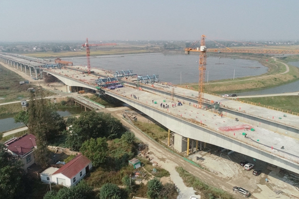 特大橋全長(zhǎng)1372米,主橋?yàn)樽兘孛鎾旎@懸澆連續(xù)箱梁。作為項(xiàng)目重要節(jié)點(diǎn)工程,工期緊、安全風(fēng)險(xiǎn)高、施工組織難度大。項(xiàng)目在建設(shè)中嚴(yán)格落實(shí)業(yè)主要求,合理配置資源,嚴(yán)把安全質(zhì)量關(guān),發(fā)揚(yáng)連續(xù)作戰(zhàn)精神,推動(dòng)項(xiàng)目建設(shè)不斷取得新成績(jī)。
