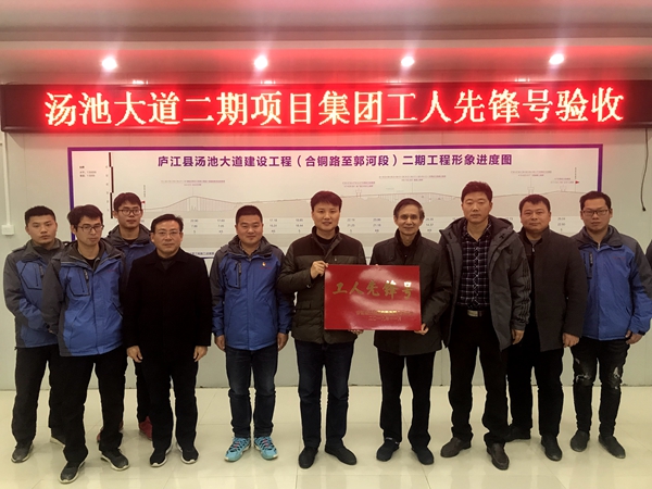 12月27日,集團工會調(diào)研專員吳曉伍在公司工會主席楊建強的陪同下,對湯池大道項目“工人先鋒號”創(chuàng)建活動進行考核、驗收,并現(xiàn)場授牌。