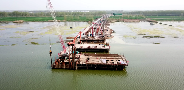 4月8日下午,固蚌高速2標(biāo)兩項(xiàng)節(jié)點(diǎn)目標(biāo)取得突破,控制性工程澮河特大橋南引橋樁基全部完成,39號(hào)主墩左幅第一座鋼圍堰順利合攏,同時(shí)各施工點(diǎn)都呈現(xiàn)出一片火熱大干景象。