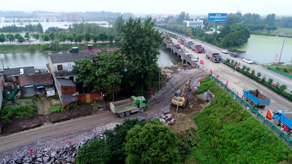 7月29日晚,徽州大道項目組織人員、機械奔赴廬江縣同大鎮(zhèn),連夜搶修清水河北堤(合銅路東側)防汛通道,全力保護加固老堤,保障沿線防汛物資通行。