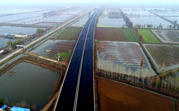 阜南S305項目瀝青攤鋪圓滿完成