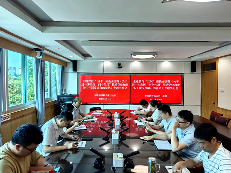 6月16日下午,安徽路橋機(jī)關(guān)第三黨支部召開主題教育“三問” 座談交流。