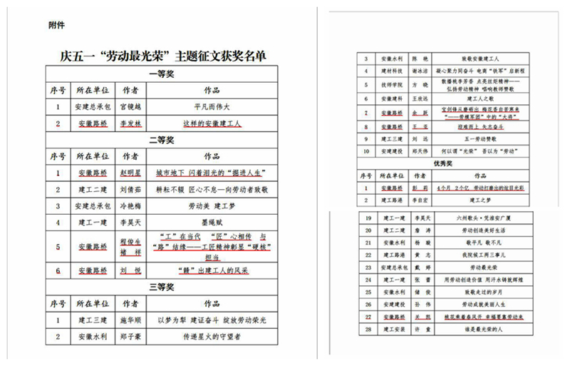 安徽路橋公司在集團(tuán)慶五一“勞動(dòng)最光榮”主題征文活動(dòng)中喜獲佳績(jī)