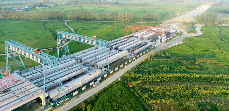 作為項(xiàng)目建設(shè)的“重頭戲”,三個(gè)預(yù)制梁場(chǎng)建設(shè)與1000余片箱梁的預(yù)制和架設(shè)是保障項(xiàng)目工期的重要環(huán)節(jié)。受到土地政策和路基施工工期因素影響,項(xiàng)目西岸梁場(chǎng)原場(chǎng)地建設(shè)方案受到很大制約。為此,項(xiàng)目負(fù)責(zé)人帶領(lǐng)技術(shù)人員頂著酷暑,找場(chǎng)地、拿方案,將原定于路基段建設(shè)的兩個(gè)梁場(chǎng)改為橋梁區(qū)建設(shè),并及時(shí)安排人員跟蹤土地丈量及臨時(shí)用地相關(guān)事宜。在梁場(chǎng)建設(shè)過(guò)程中,努力克服場(chǎng)地施工交替頻繁、高溫雨水、道路運(yùn)輸條件較差等多項(xiàng)難題,在6月實(shí)現(xiàn)首片箱梁澆筑;7月西岸預(yù)制梁場(chǎng)建設(shè)基本完成;8月首跨箱梁架設(shè)完成;9月3個(gè)梁場(chǎng)均達(dá)到滿產(chǎn)。勞動(dòng)競(jìng)賽沖鋒號(hào)吹響以來(lái),項(xiàng)目牢固樹(shù)立“一切圍繞項(xiàng)目轉(zhuǎn)、一切聚焦項(xiàng)目干”的工作理念,確保日日有重點(diǎn)、周周有變化、月月有成效。目前樁基、墩柱、箱梁預(yù)制架設(shè)施工進(jìn)度始終保持全線領(lǐng)先優(yōu)勢(shì)。