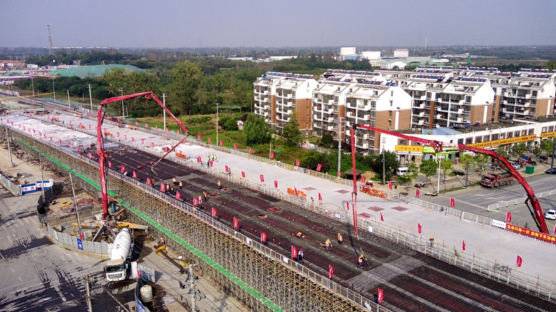 10月14日上午,G312合六路2標(biāo)項(xiàng)目“百日攻堅大會戰(zhàn)”專項(xiàng)競賽傳來捷報,伴隨著小蜀山西路上跨橋最后一聯(lián)現(xiàn)澆箱梁頂板順利澆筑,項(xiàng)目主線順利實(shí)現(xiàn)貫通。