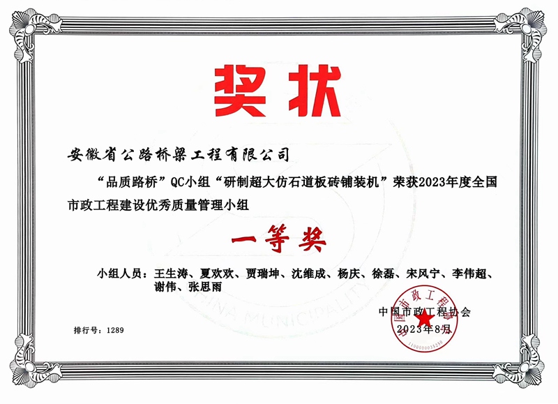 11月10日,中國市政工程協(xié)會(huì)“2023年全國市政工程建設(shè)質(zhì)量管理小組培訓(xùn)交流會(huì)”在廣東佛山順利召開,會(huì)上頒發(fā)了2023年度全國市政工程建設(shè)優(yōu)秀質(zhì)量管理小組各分組成績排名第一的QC成果證書,公司3項(xiàng)成果名列其中。