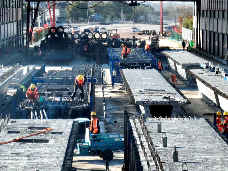 11月22日下午,記者在安徽路橋承建的G329孫埠至大汪村一級公路改建工程施工現(xiàn)場看到,該工程4號橋部分橋面已完成澆筑,工人正在鋪設(shè)土工布進行養(yǎng)護。與此同時,另一段橋面上,工人忙著焊接鋼筋,為隨后的混凝土澆筑做好準(zhǔn)備。不遠處的預(yù)制梁場內(nèi),工人繁忙有序地操作著機器,一排排預(yù)制梁正在制作,一派如火如荼的建設(shè)場景。
