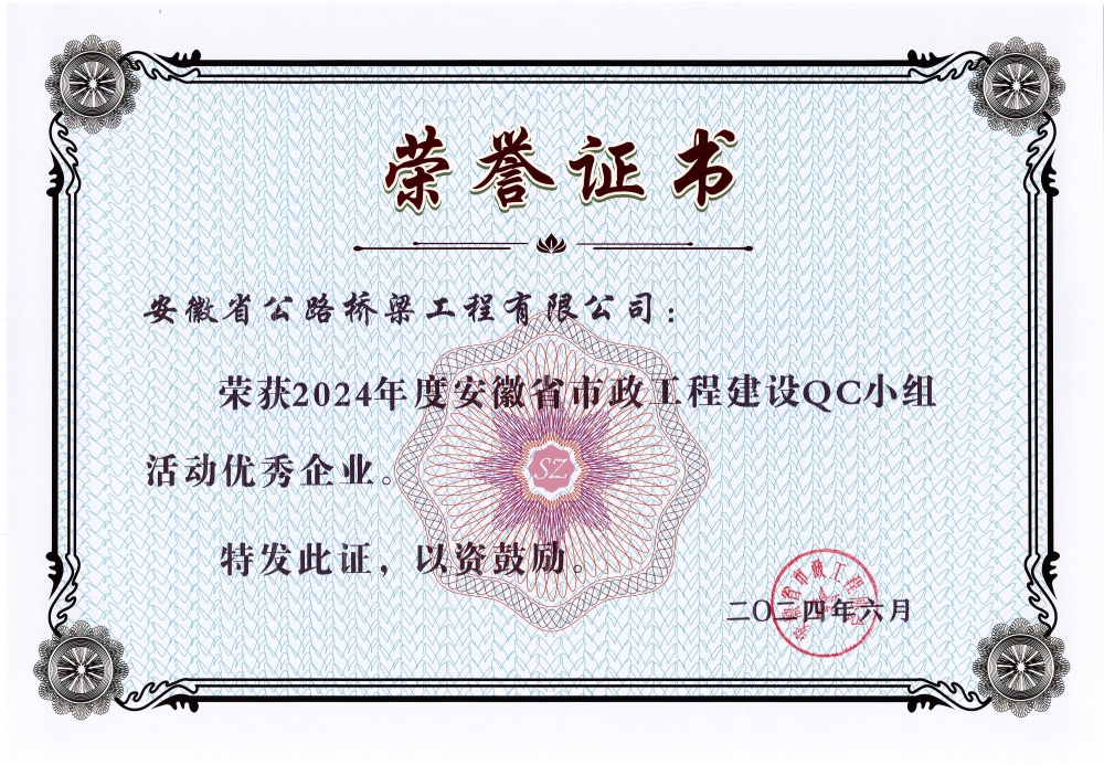 近日,在合肥開展的安徽省市政工程協(xié)會2024年度工程建設(shè)優(yōu)秀QC小組活動交流會上,公司多項(xiàng)QC課題成功斬獲優(yōu)秀QC成果獎。同時,公司榮獲了2024年度安徽省市政工程建設(shè)QC小組活動優(yōu)秀企業(yè)稱號。