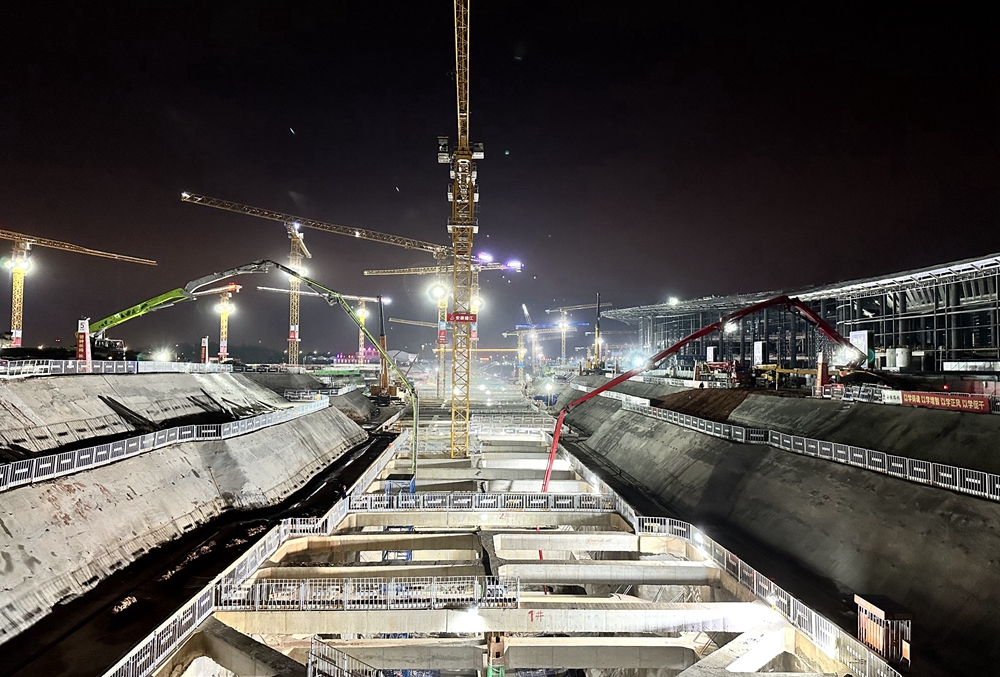 6月18日,合肥新橋國際機場綜合交通中心項目經過一晚上的鏖戰(zhàn),成功完成合新六城際鐵路新橋機場站先行工程首塊軌頂風道澆筑施工。