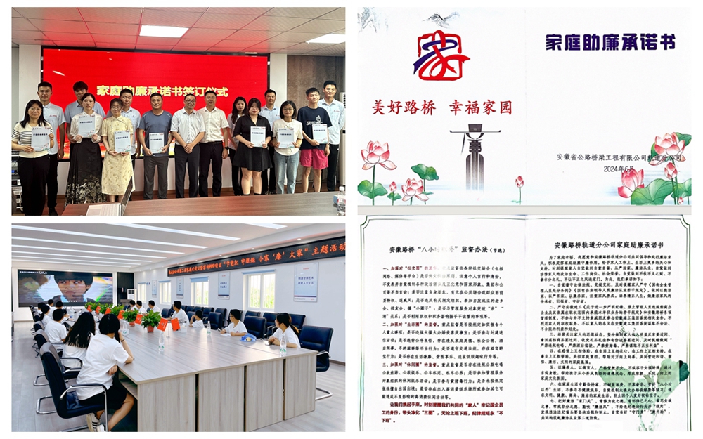 在各項目家庭助廉活動中,員工和家屬共同觀看了《我是張清廉》、《清廉潤家風(fēng),當(dāng)好廉內(nèi)助》、《爸爸的話》等廉潔微電影和公司《寄語送清風(fēng) 廉潔伴我行》欄目優(yōu)秀作品。同時,各項目還向每個職工家庭發(fā)放了《家屬助廉承諾書》,大家踴躍寫下承諾,表示要和分公司一道擰緊廉潔“安全閥”,幫助我們共同的家人走正道、揚正氣,當(dāng)好一名廉潔自律的路橋人。