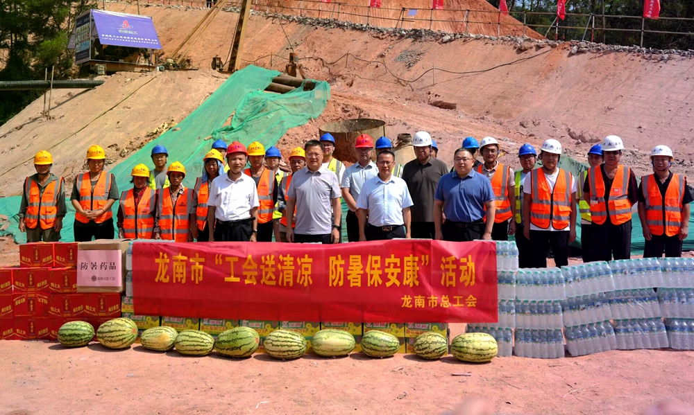 7月24日上午,龍南市委副書記、市長彭江閩到G105龍南改建項目實地調研項目建設進展情況,看望慰問一線建設者,并送來防暑降溫物資。