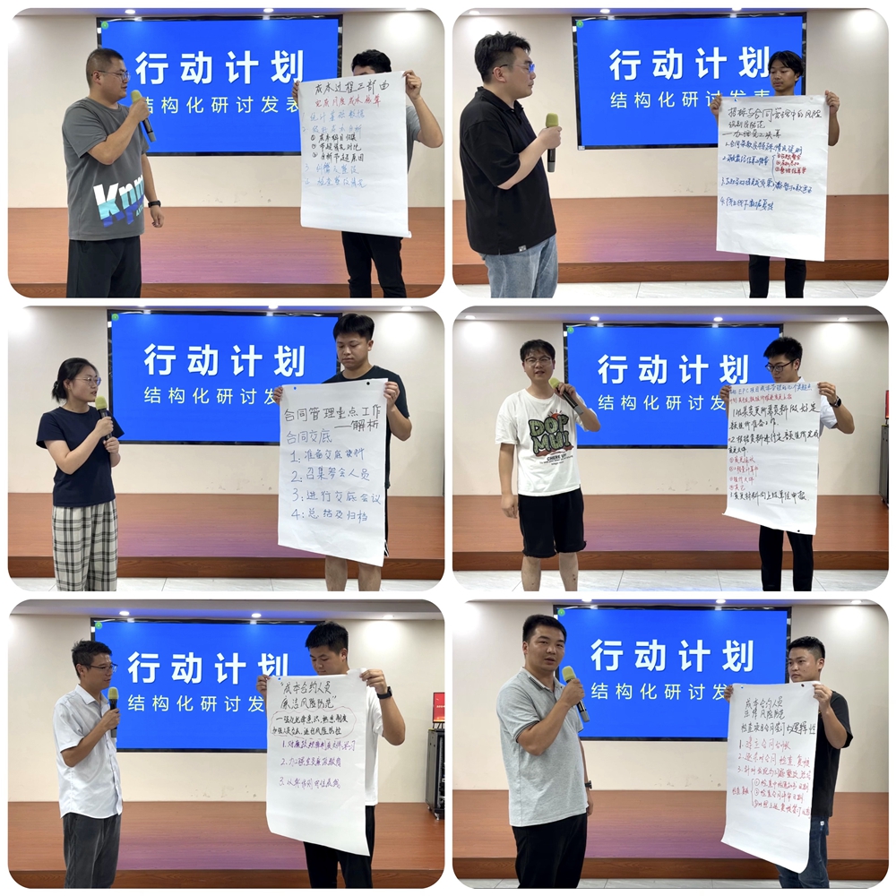 在為期三天兩晚的全封閉培訓(xùn)期間,全體學(xué)員認(rèn)真投入到培訓(xùn)過程中,積極交流互動,彼此取長補短,高效完成了課程研討、項目案例萃取等多項培訓(xùn)任務(wù),并且通過深度座談、復(fù)盤總結(jié)、分享項目管理經(jīng)驗,沉淀了一系列項目成本合約管理場景化課程及優(yōu)秀項目管理案例。