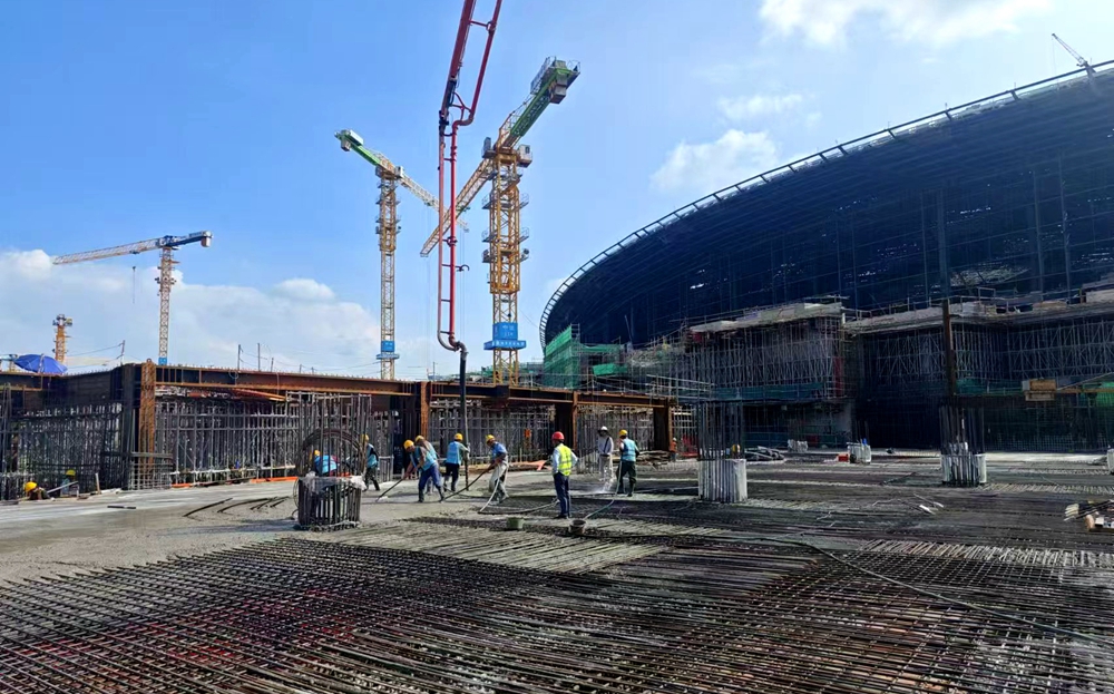 8月29日,合肥新橋國(guó)際機(jī)場(chǎng)綜合交通中心項(xiàng)目GTC A4-1區(qū)空腔層結(jié)構(gòu)混凝土澆筑完成。