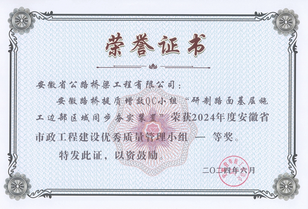 堅(jiān)持抓創(chuàng)新從施工生產(chǎn)重難點(diǎn)出發(fā),分公司擬定了27項(xiàng)科研課題,下發(fā)了《2024年度科技創(chuàng)新成果指標(biāo)》,并針對(duì)預(yù)制箱梁施工質(zhì)量及路面基層壓實(shí)質(zhì)量控制等課題,成立了6個(gè)QC小組,獲評(píng)“安徽省市政工程協(xié)會(huì)”及“安徽省建設(shè)工程質(zhì)量與安全協(xié)會(huì)”QC成果一等獎(jiǎng)3項(xiàng),二、三等獎(jiǎng)5項(xiàng)。鼓勵(lì)基層項(xiàng)目開展提升功效類小發(fā)明、小創(chuàng)造、小革新、小設(shè)計(jì)、小建議,今年以來,分公司順利獲評(píng)實(shí)用新型發(fā)明專利20余項(xiàng),征集“合理化建議”30余條。