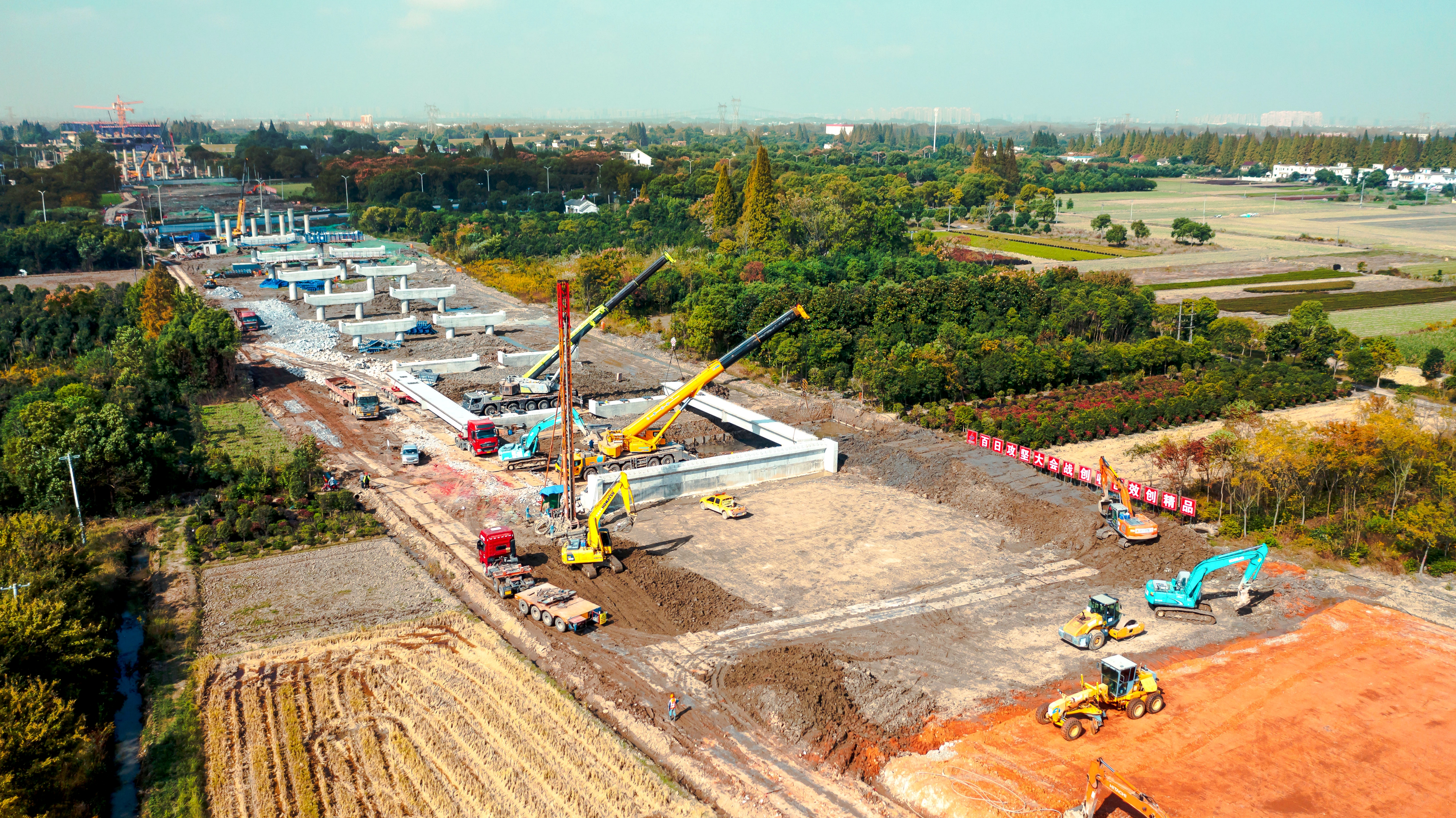 項(xiàng)目首片架設(shè)預(yù)制箱梁位于青弋江特大橋東引橋第52跨。項(xiàng)目部制定詳細(xì)的架梁施工和專項(xiàng)運(yùn)輸方案,強(qiáng)化對工人的技術(shù)培訓(xùn)和安全教育,施工現(xiàn)場組織技術(shù)人員全程旁站,確保人機(jī)材有序配置、梁板架設(shè)精準(zhǔn)可控。歷時(shí)2小時(shí)順利完成架設(shè)任務(wù)。