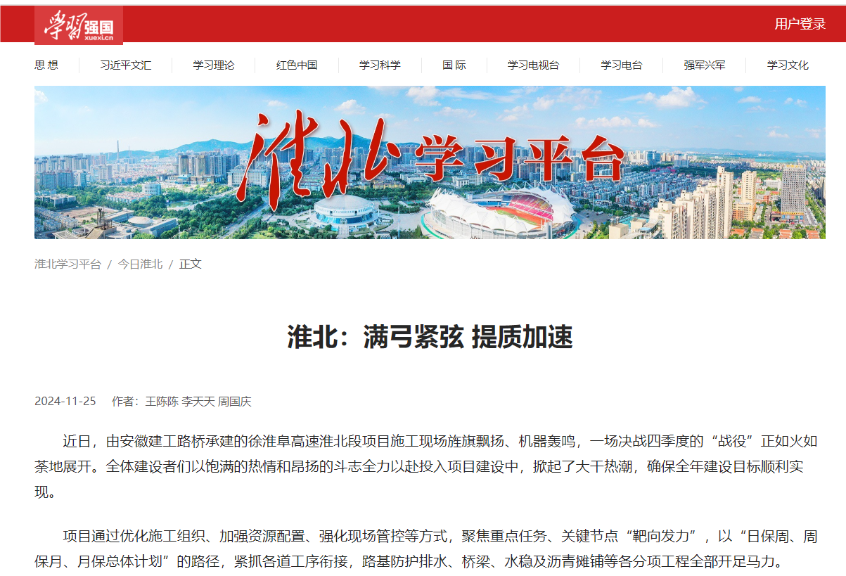 【名媒聚焦】安徽日報客戶端、學習強國、淮北日報:決戰(zhàn)年終!徐淮阜高速建設(shè)加速沖刺