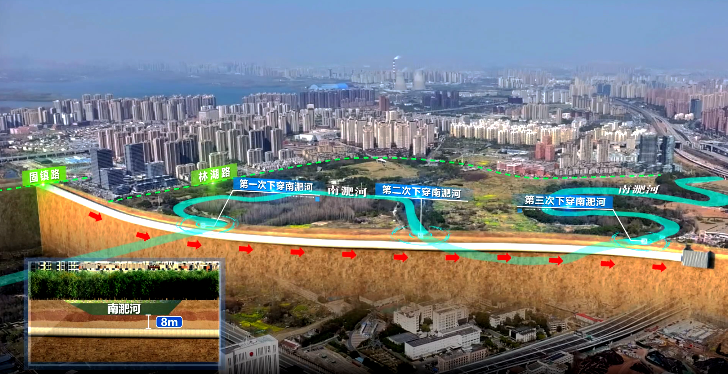 合肥新橋機(jī)場S1線先行段項(xiàng)目三次下穿南淝河