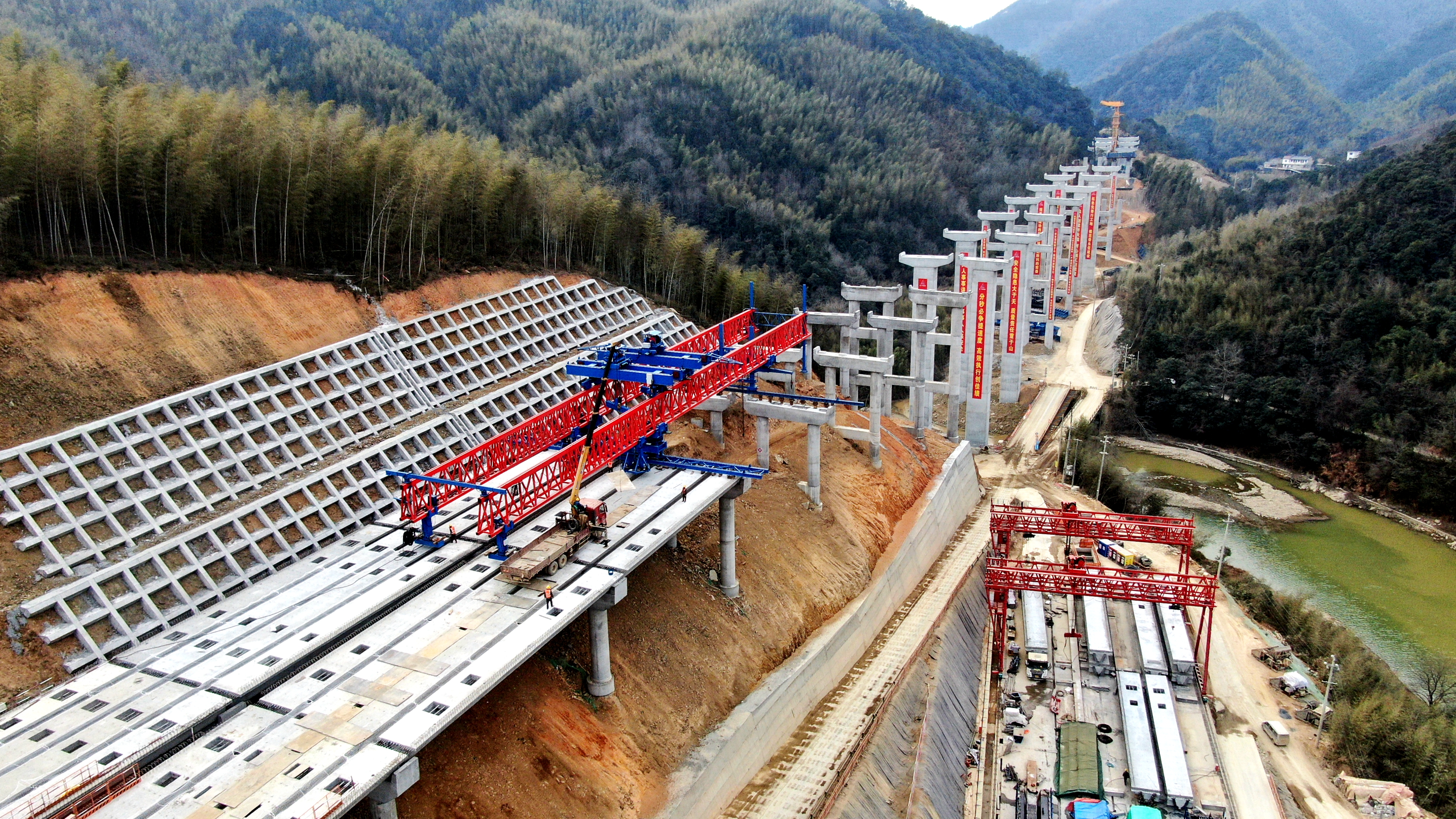 近80名施工人員投入緊張有序的梁板預制及架設、隧道開挖施工中,全力推進工程建設,沖刺蛇年“開門紅”。