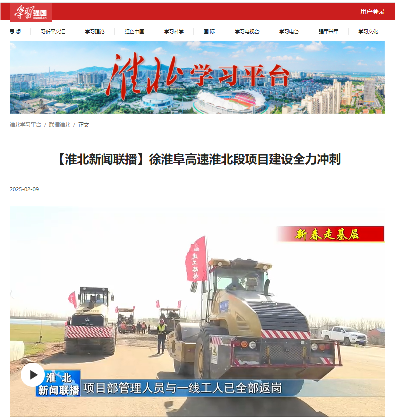 【名媒聚焦】學(xué)習(xí)強(qiáng)國、淮北新聞聯(lián)播、淮北日?qǐng)?bào):徐淮阜高速淮北段項(xiàng)目全力以“復(fù)”加油干