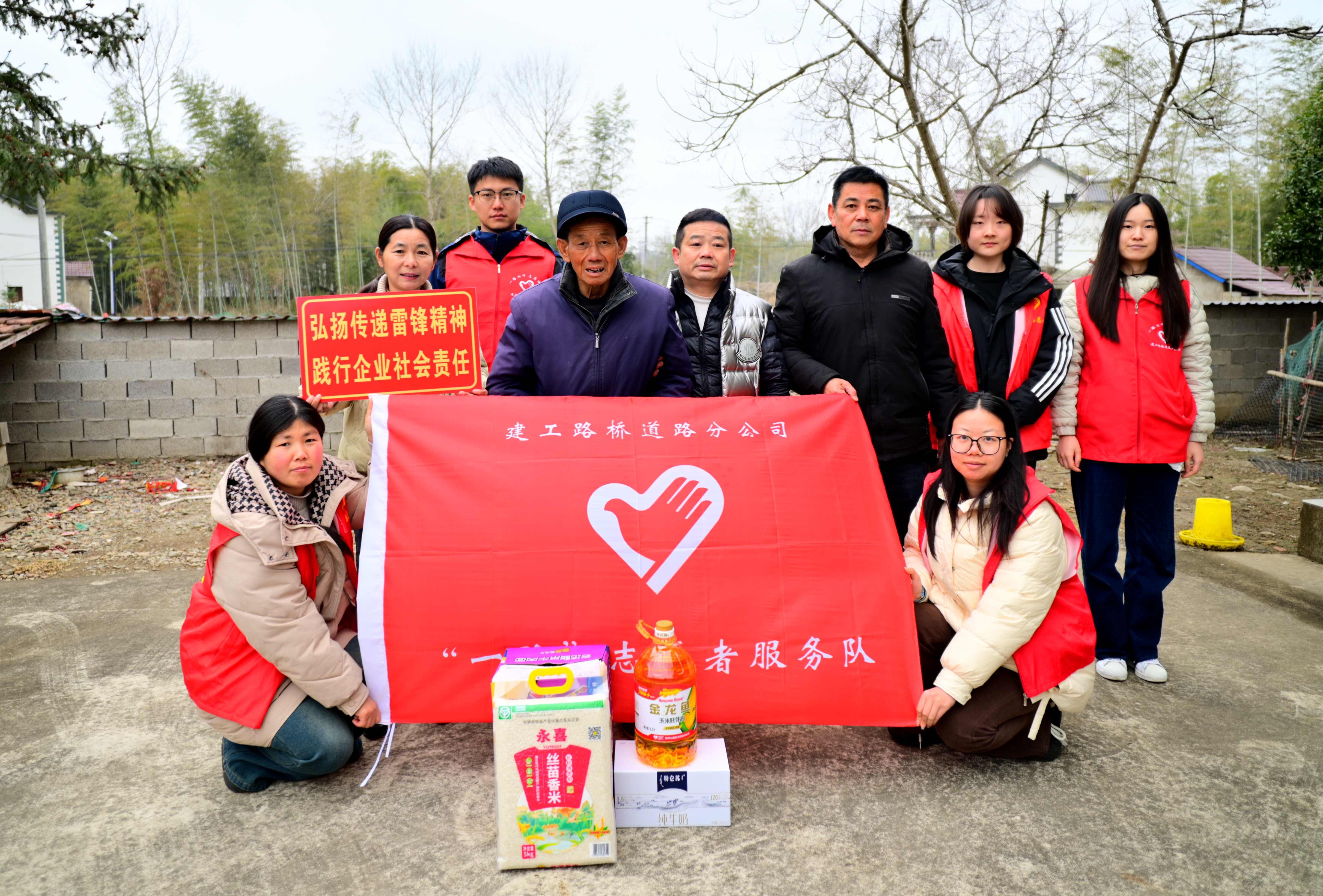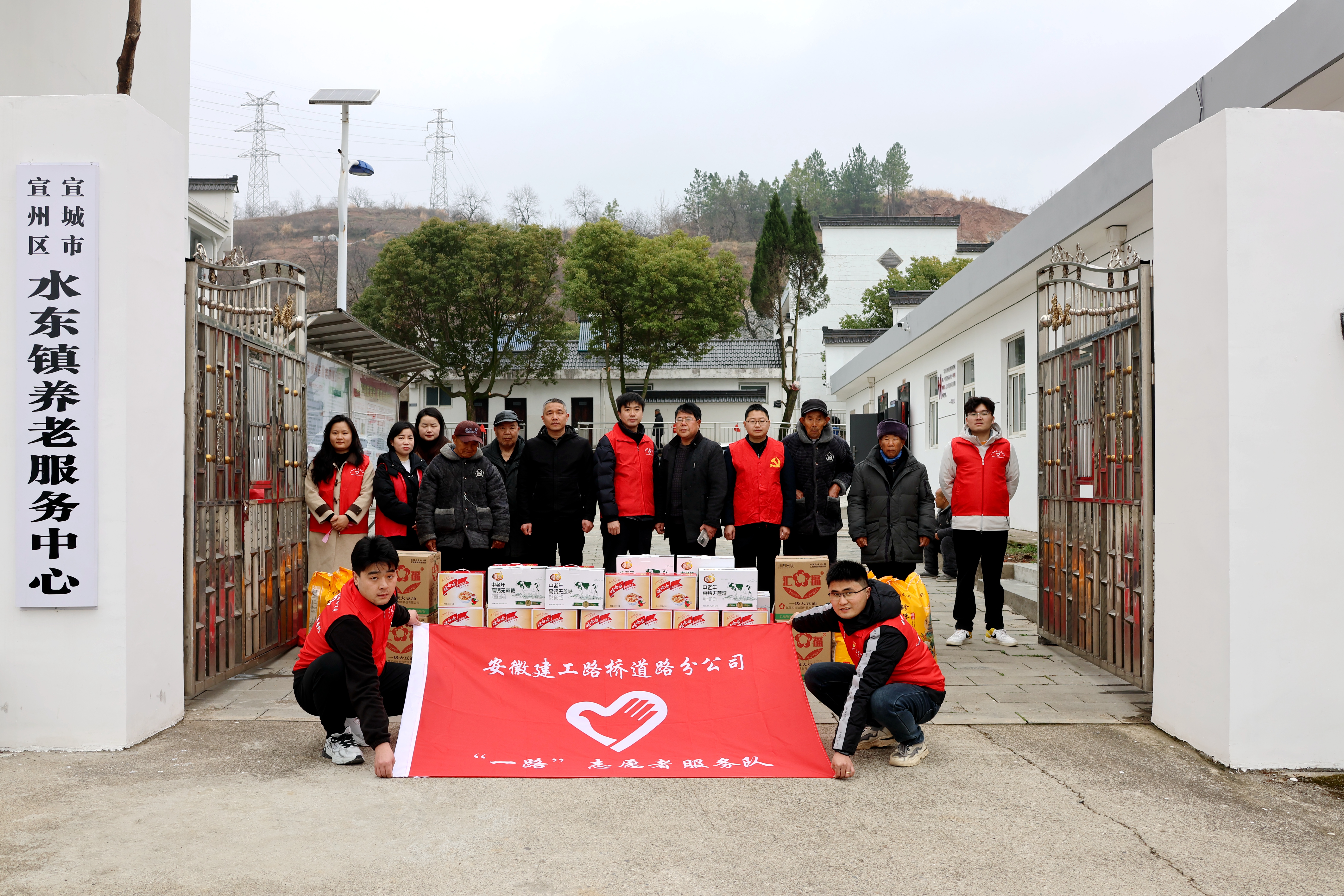 G329改建工程項(xiàng)目職工到宣州區(qū)水東鎮(zhèn)養(yǎng)老服務(wù)中心開展雷鋒日志愿慰問活動,為老人們送去營養(yǎng)品、大米和食用油。