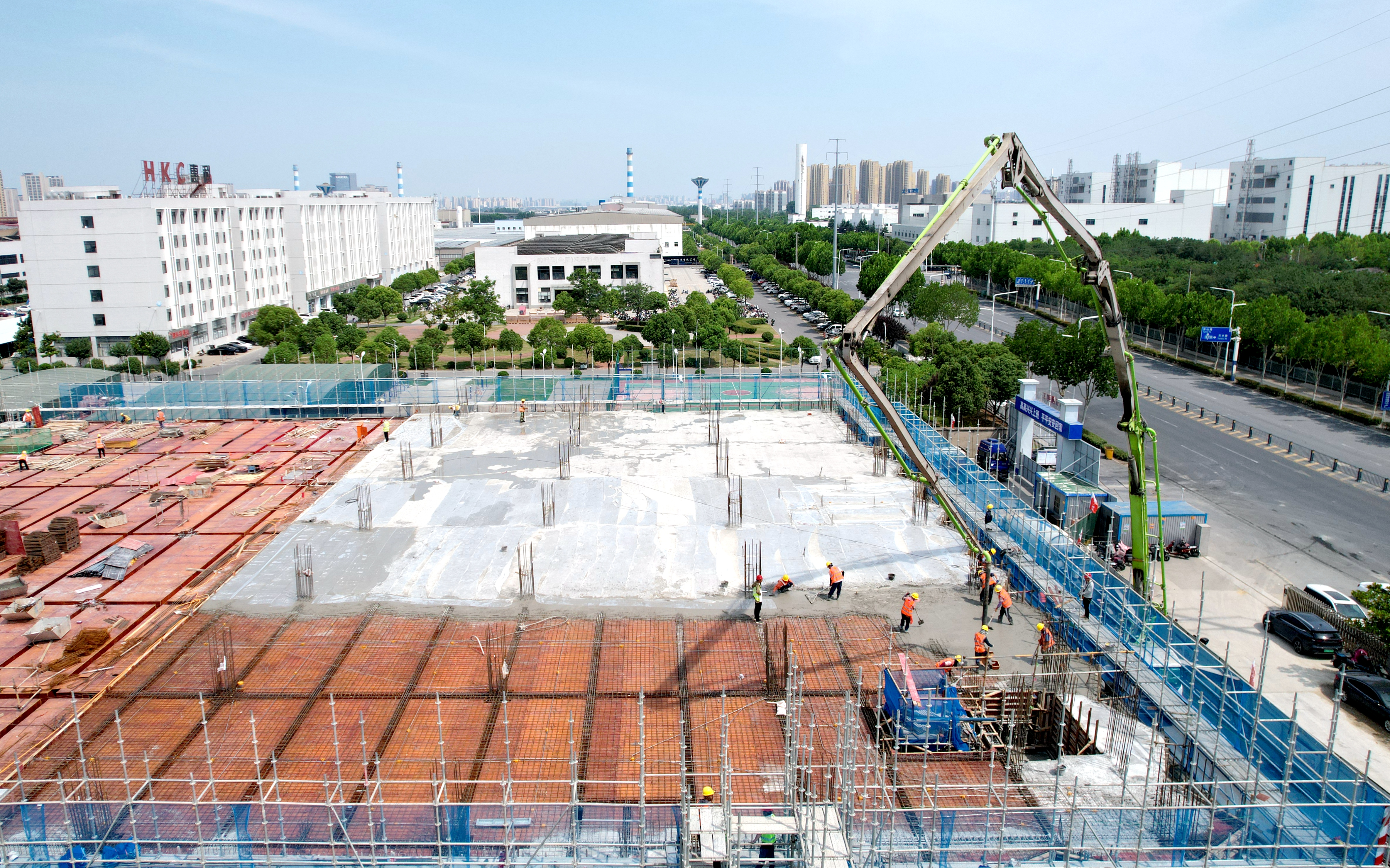 奮戰(zhàn)二季度 沖刺“雙過半” | 人工智能產(chǎn)業(yè)園項目首層頂梁板澆筑完成