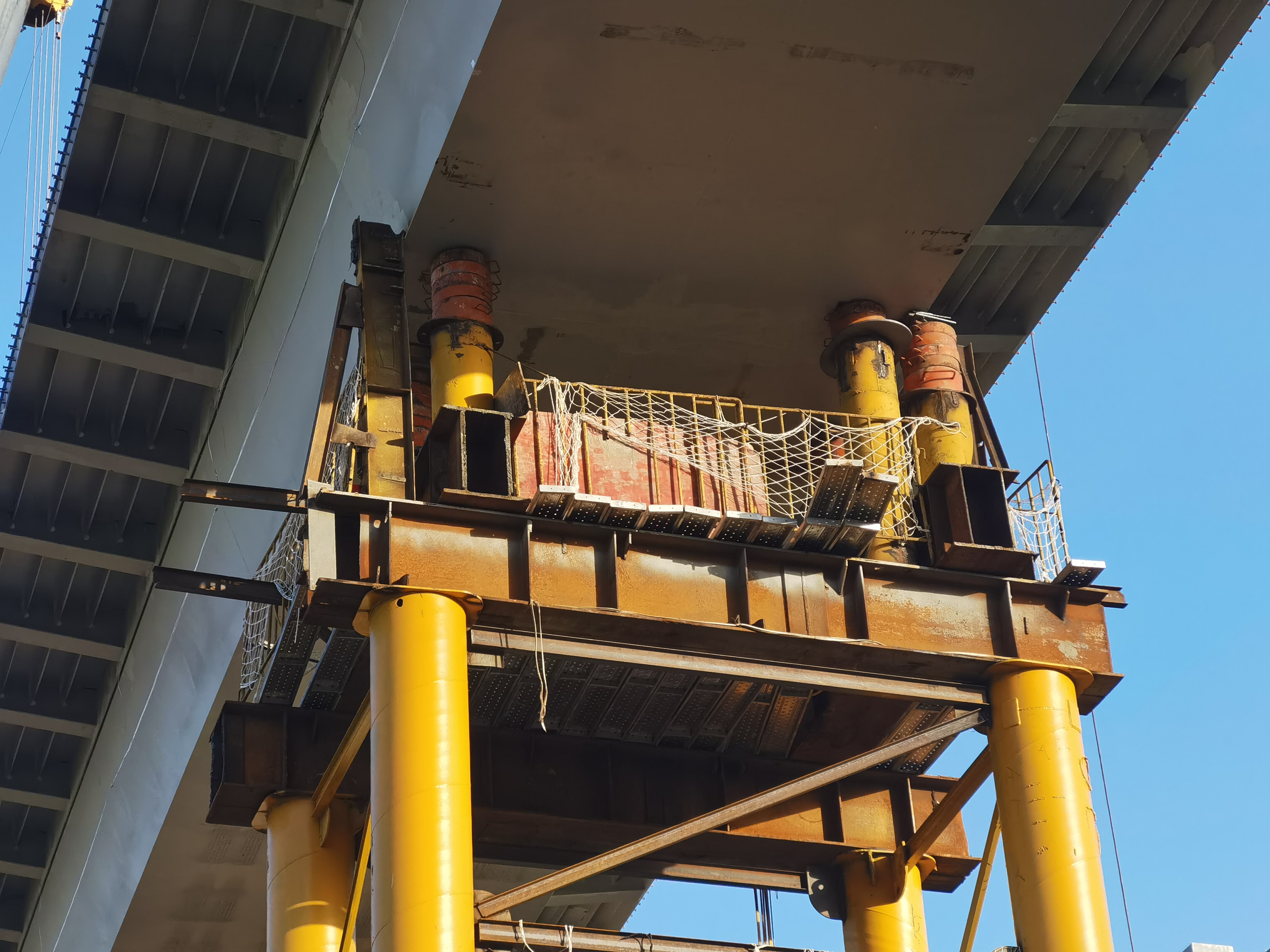 城軌雙層鋼桁架橋由跨中向兩端拱腳合龍施工技術(shù),采用了主橋鋼桁架由跨中向兩端拱腳安裝的新工藝,調(diào)整后的施工方法無需等到墩柱施工完成再進行鋼梁架設(shè),主橋跨中鋼桁架的架設(shè)與兩端承臺墩柱可同步施工,施工進度快。該項技術(shù)成功應(yīng)用于引江濟淮繁華大道橋,有效節(jié)省工期60天,降低成本近90萬元。