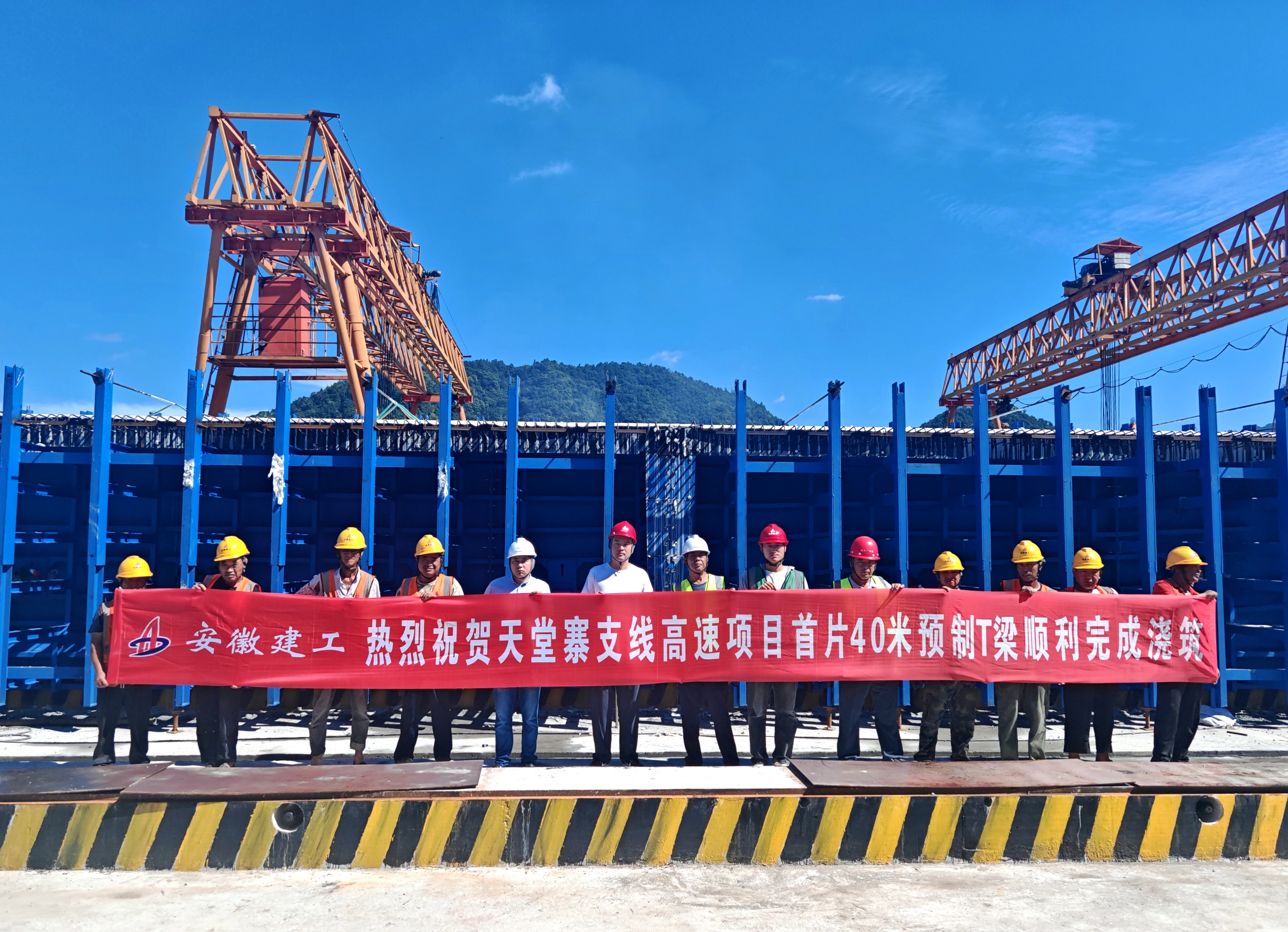 【路橋“競”行時】天堂寨支線高速項目首片預制T梁成功澆筑