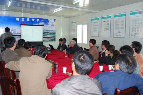 下午,觀摩團一行又驅車來到了金桃橋項目。參觀了現場后,在金寨縣賓館會議室觀摩團一行聽取了項目經理劉曉晗的匯報。隨后各單位技術負責人就項目的箱拱吊裝施工等關鍵技術作了討論和交流。鄭總對該橋目前進展情況表示滿意,并做了總結講話。同時對項目部積極探索和鉆研技術難點的精神表示贊賞。并對公司的質量技術管理工作提出要求,要求格式進一步結合深入學習實踐科學發(fā)展觀,繼續(xù)開展技術的開發(fā)挖掘,進行技術的集成創(chuàng)新,研究、提煉項目工法和專利,為集團公司技術創(chuàng)新多做工作,以增強集團公司的核心競爭力。