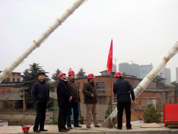 戴總一行參觀了大橋南岸主橋施工現(xiàn)場(chǎng)。在聽(tīng)取了項(xiàng)目部江仲明經(jīng)理對(duì)前期工作和當(dāng)前施工進(jìn)展情況的匯報(bào)后,戴總對(duì)我部工作給予了高度評(píng)價(jià),同時(shí)提出了更高的要求,希望我部繼續(xù)努力,再上新臺(tái)階。隨后,戴總一行還登上了主橋橋面,實(shí)地察看了正在緊張進(jìn)行的主橋前支點(diǎn)掛藍(lán)施工,親切慰問(wèn)了冒著嚴(yán)寒戰(zhàn)斗在一線的現(xiàn)場(chǎng)施工工人和技術(shù)人員,并就主橋完成后如何拆除前支點(diǎn)掛藍(lán)提出了指導(dǎo)性的方案。