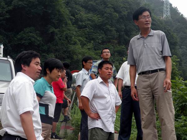 陳書記一行首先在項目經(jīng)理王遠勝的陪同下仔細查看了我一工區(qū)梁場、二工區(qū)生活區(qū)、三工區(qū)梁場、預制場受災現(xiàn)場,了解我部受災情況。王經(jīng)理向陳書記詳細匯報我部應對夏季洪水的措施和本次抗洪救災情況。