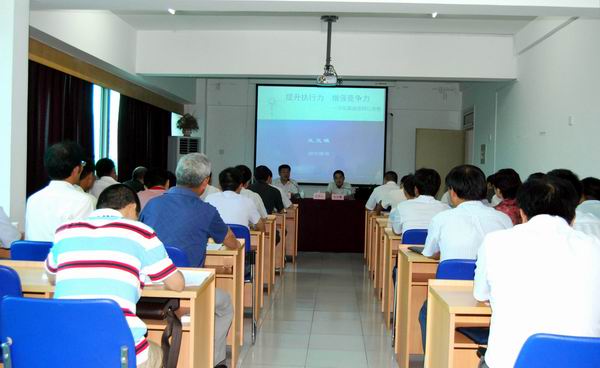 王總先從執(zhí)行力的概念出發(fā),深入淺出地給大家講解了執(zhí)行力的基本理論,并從領(lǐng)導(dǎo)層的執(zhí)行力到中層干部的執(zhí)行力,從團(tuán)隊(duì)精神到個(gè)人責(zé)任心,將有執(zhí)行力的領(lǐng)導(dǎo)特點(diǎn)和個(gè)體特點(diǎn)逐一進(jìn)行了深入地分析。整個(gè)講座過(guò)程,王總客觀的擺事實(shí),幽默風(fēng)趣的講道理,把執(zhí)行力與企業(yè)競(jìng)爭(zhēng)力的關(guān)系分析的十分透徹,贏得了與會(huì)者的陣陣掌聲。
