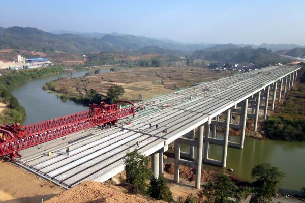 在公司領(lǐng)導(dǎo)的正確指引下,該部科學規(guī)劃、精心組織、統(tǒng)籌管理,實現(xiàn)項目資源合理調(diào)配,狠抓安全生產(chǎn),注重施工質(zhì)量,穩(wěn)步推進了施工進度。該部積極響應(yīng)大廣高速龍楊段項目辦“決戰(zhàn)3個月,全面完成2011年度目標任務(wù)”的活動要求,加大了工料機的投入,在9月30日該橋第一片T梁正式安裝后,歷時77天完成了189片T梁安裝以及25%的橋面系施工,在全面實現(xiàn)2011年度目標任務(wù)上邁出了堅實的一步。
