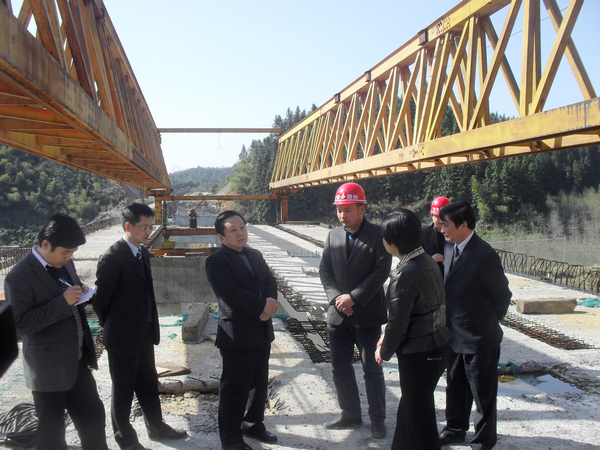在金字牌大橋現(xiàn)場,項目經理黃華就項目工程總體完成情況、剩余工程量、下步計劃安排以及金字牌跨皖贛鐵路橋的施工進展情況作了詳細匯報。王福宏書記深入到箱梁安裝施工現(xiàn)場,對施工進展情況進行了詳細的察看,對該標段的建設情況表示了肯定;并要求該標段在抓進度的同時要保證質量、安全,確保圓滿完成剩余工程量。王福宏書記還代表黃山市委、市政府對該標段建設者表示親切慰問。