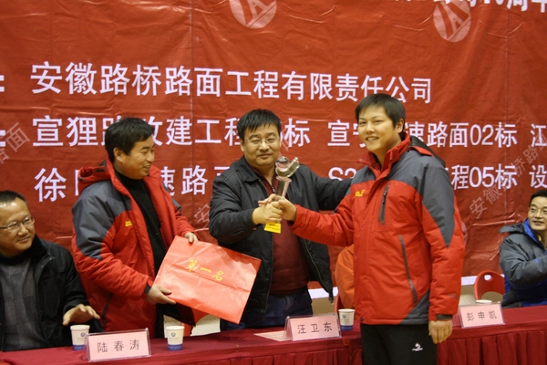 簡短而隆重的開幕式之后, 公司副總劉要武為比賽開球,比賽正式拉開帷幕。揭幕戰(zhàn)在租賃公司與宣貍L5標之間展開。雙方球員在場上發(fā)揚了敢于拼搏、團結(jié)奉獻的精神,精彩、激烈的場面不斷出現(xiàn),贏得了場下觀眾的一陣陣掌聲。在兩天的角逐中,各代表隊均表現(xiàn)優(yōu)秀,隊員們之間充分溝通、相互團結(jié),充分展現(xiàn)了“比賽第二、友誼第一”的比賽精神。后勤代表隊技高一籌,最終以領(lǐng)先幾分的優(yōu)勢戰(zhàn)勝了宣貍L5標代表隊,贏得了比賽的冠軍,宣貍L5標、徐明03標分別獲得亞軍、季軍。宣寧路面02標、撫吉BP2標、租賃公司分別獲得優(yōu)秀組織獎、精神風(fēng)貌獎和道德風(fēng)尚獎。