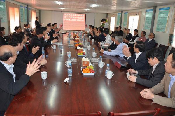 在項(xiàng)目施工現(xiàn)場,市政分公司副經(jīng)理王明禮向考察團(tuán)詳細(xì)介紹了工程情況。當(dāng)考察團(tuán)對該項(xiàng)目僅需300天就能夠完成概算6.06億元的施工任務(wù)時,表現(xiàn)出不可思議和贊嘆之情。在項(xiàng)目會議室,孫學(xué)軍董事長對公司總體情況進(jìn)行了介紹,并逐一介紹了公司在市政、高速、橋隧、海外等各個領(lǐng)域的精品工程。