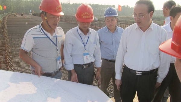 張祥安一行先后檢查了滁馬03標(biāo)洪武路大橋和滁州南互通2#橋施工現(xiàn)場(chǎng),對(duì)建設(shè)情況給予了高度評(píng)價(jià)。他指出,滁馬高速工期緊,難度大,取得這樣的成績很不容易,同時(shí)也要求施工單位在抓好工程建設(shè)的同時(shí),抓實(shí)、抓好施工安全工作,確保萬無一失。最后,張祥安勉勵(lì)項(xiàng)目全體建設(shè)者們,要抓住機(jī)會(huì),再接再厲,創(chuàng)造更好的業(yè)績。