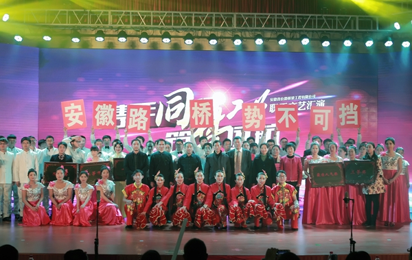 演出現(xiàn)場華燈璀璨,座無虛席,氣氛喜慶熱烈。匯演正式開始前,公司董事長、總經(jīng)理孫學(xué)軍發(fā)表了熱情洋溢的致辭。他首先代表公司向蒞臨現(xiàn)場的嘉賓及長期以來堅持在公司各個崗位的員工及家屬,致以誠摯的問候和新春的美好祝愿,向默默奉獻(xiàn),為路橋事業(yè)奠基的前輩們致以崇高的敬意。指出,2015年,是宏觀形勢錯綜復(fù)雜的一年,也是公司成績斐然的一年,在建工集團(tuán)的正確領(lǐng)導(dǎo)下,全體員工凝心聚力,開拓奮進(jìn),取得了驕人的業(yè)績。充滿機(jī)遇和挑戰(zhàn)的“十三五”已經(jīng)開局,全體路橋人要秉承優(yōu)良傳統(tǒng),凝心聚力,同舟共濟(jì),譜寫安徽路橋新的輝煌。