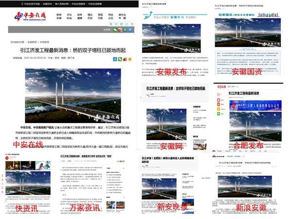 引江濟(jì)淮(合肥段)3座市政橋梁工程二標(biāo)段進(jìn)展得到省市級(jí)主流媒體廣泛關(guān)注報(bào)道