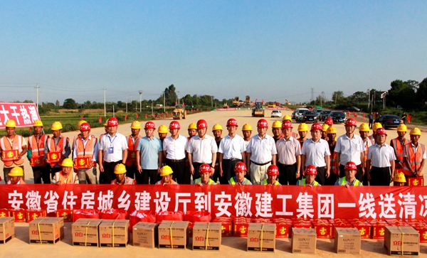 在施工現(xiàn)場(chǎng),陳楊年代表安徽省住建廳向參建人員表示慰問(wèn),并為一線施工人員發(fā)放了防暑降溫慰問(wèn)品。他指出,進(jìn)入暑期以來(lái),一線作業(yè)人員戰(zhàn)高溫、斗酷暑、搶工期、趕進(jìn)度。希望省路橋公司要壓實(shí)安全生產(chǎn)主體責(zé)任,科學(xué)安排施工作業(yè)時(shí)間,做好防暑降溫工作,保證參建人員的施工安全;廣大工友要立足崗位,做好本職工作,牢記安全規(guī)章制度,確保身體健康和施工安全。