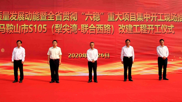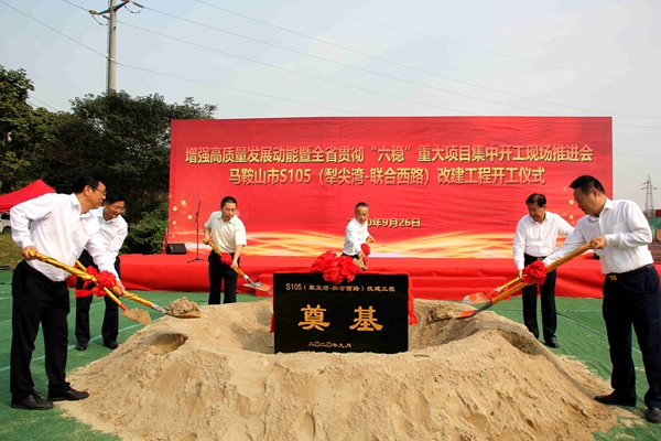 9月26日上午,增強(qiáng)高質(zhì)量發(fā)展動(dòng)能暨全省貫徹“六穩(wěn)”重大項(xiàng)目集中開(kāi)工現(xiàn)場(chǎng)推進(jìn)會(huì)(馬鞍山市分會(huì)場(chǎng))在公司承建的S105(犁尖灣-聯(lián)合西路)改建工程現(xiàn)場(chǎng)舉行,該項(xiàng)目開(kāi)工儀式同期舉辦。馬鞍山市委書(shū)記張?jiān)婪宄鱿瘍x式并宣布工程開(kāi)工,市委副書(shū)記、市長(zhǎng)袁方,公司黨委副書(shū)記、總經(jīng)理錢(qián)申春分別致辭。