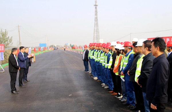 10月30日上午,歷經七個月的奮戰(zhàn),淮北G237項目路面工程全線貫通。淮北市交通局黨組書記、局長韓海林,副局長苗中治,淮北市公路管理服務中心黨委書記、主任楊國棟,公司黨委副書記、總經理錢申春,黨委委員、副總經理杜海峰到場祝賀,并看望慰問全體參建人員。