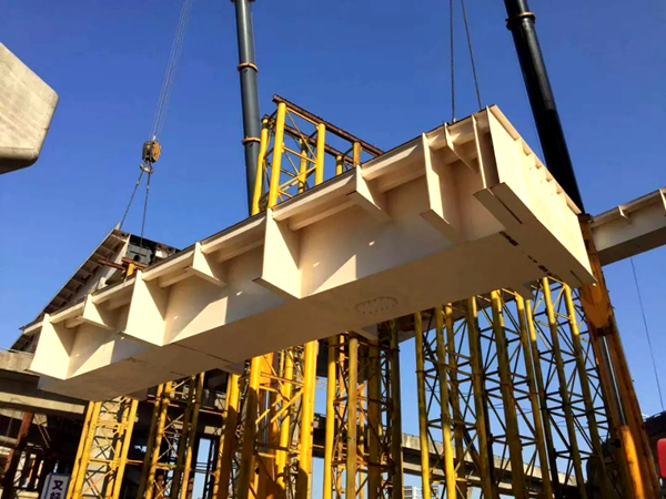 傳統(tǒng)的澆筑混凝土的建設(shè)方法相比,連續(xù)鋼箱梁施工猶如拼搭“樂高”積木,對周邊交通影響小,在保障通行、縮短工期等方面優(yōu)勢明顯。