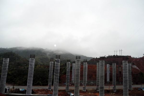 大廣B1標盤石分離立交橋墩柱澆筑全部完成