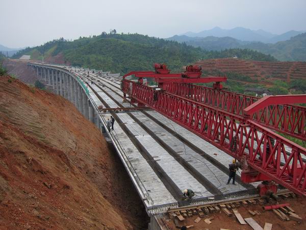 今年贛南雨季較之往年稍微提前,三月雨水繁多,給江口大橋的梁板安裝帶來了很大影響。作為開年施工建設(shè)中的控制性施工點(diǎn),我部積極采取多種措施,在確保施工安全和工程質(zhì)量的前提下,大力推進(jìn)梁板安裝施工進(jìn)度。項(xiàng)目部成立以項(xiàng)目經(jīng)理為組長(zhǎng)的梁板安裝工作組,搶抓有利天氣開展安裝工作,于2012326日創(chuàng)造全線單天安裝1030T梁的記錄(包括架橋機(jī)過孔),扎扎實(shí)實(shí)的把工作落在實(shí)處,為我部完成江口大橋的半幅貫通奠定了堅(jiān)實(shí)基礎(chǔ)。