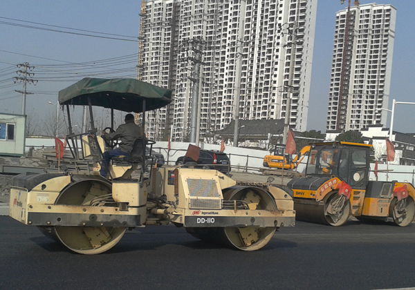 隨著第一輛運(yùn)料車進(jìn)入施工現(xiàn)場,攤鋪機(jī)開始啟動,倒料、攤鋪、碾壓一條龍作業(yè),路面很快成形。為加快工程進(jìn)度,現(xiàn)場采用兩臺攤鋪機(jī)同時作業(yè)。此次瀝青砼攤鋪長度為1.2公里,懷寧北路路面瀝青攤鋪分三層,當(dāng)天鋪設(shè)的是下面層粗礫石。