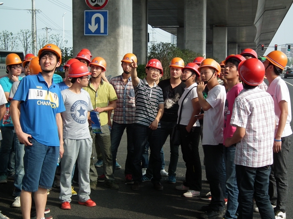 下午15:00,在項(xiàng)目部會(huì)議室,該項(xiàng)目總工利用PPT圖文并茂的給學(xué)生們介紹了阜陽北路高架工程概況、施工工藝、工程質(zhì)量控制。隨后,學(xué)生們來到施工現(xiàn)場(chǎng),該項(xiàng)目總工將學(xué)校中學(xué)習(xí)到的理論知識(shí)與現(xiàn)場(chǎng)施工實(shí)際相結(jié)合,對(duì)阜陽北路高架橋梁的整個(gè)施工工藝流程作了深入淺出的講解。